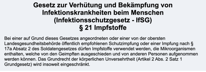 Gesetz zur Verhütung und Bekämpfung von Infektionskrankheiten beim Menschen (Infektionsschutzgesetz – IfSG) § 21 Impfstoffe