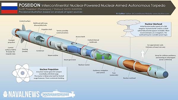 Allerdings werden die Folgen eines Einsatzes dieser Waffentypen stark übertrieben. Was die rein physischen Zerstörungen betrifft, eher nicht, aber das Gerede über großflächige atomare Verseuchungen schon. Die nuklearen Antriebseinheiten sind so klein, haben so wenig spaltbares Material, dass eine größere Strahlenverseuchung ausgeschlossen werden kann. Mit den Atombomben an Bord sieht es etwas anders aus. Aber man bedenke, wieviele Atombomben schon unter Wasser gezündet worden sind. Vor allem in der Südsee. Ja, dort gibt es immer noch atomare Verseuchungen, aber die sind eher lokal begrenzt. So gehe ich davon aus, dass da einfach Angst geschürt wird, auch weil es eine russische Waffengattung ist. Es ist aber der Sinn von Atomwaffen, Angst zu machen.