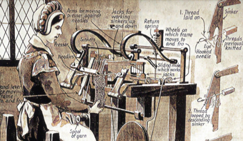 „Thou aimest high, Master Lee. Consider thou what the invention could do to my poor subjects. It would assuredly bring to them ruin by depriving them of employment, thus making them beggars.“ (Sie haben sich ein hohes Ziel gesetzt, Meister Lee. Bedenken Sie jedoch was die Erfindung meinen armen Untertanen antun könnte. Diese Erfindung würde sie sicherlich ruinieren, indem sie ihnen die Arbeit raubt und sie dadurch zu Bettlern macht.).