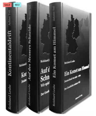 Damit Sie die Zusammenhänge verstehen können, sollten Sie sich Leubes Werk „Ende und Anfang“ vornehmen. Wer es aber umfassender wissen will, dem empfehlen wir unser „Geschichtspaket 2“ mit den Bänden „Kontinentaldrift“, „Auf des Messers Schneide“ und „Ein Komet am Himmel“, das Sie zum Sonderpreis von 60,- € direkt beim Verlag bestellen können. Im Buchhandel ist dieses Paket nicht erhältlich.